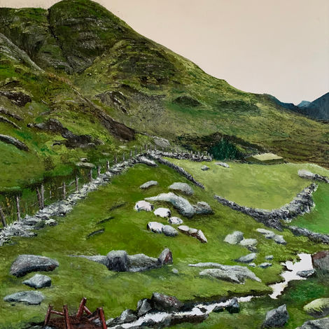 My landscapes are inspired by Kerry, Wicklow and other parts of the country - its mountains, field patterns, bog-lands, rock formations, it’s colours, hues, air and light. Some of these places are uninhabitable or were once habitable but now left behind